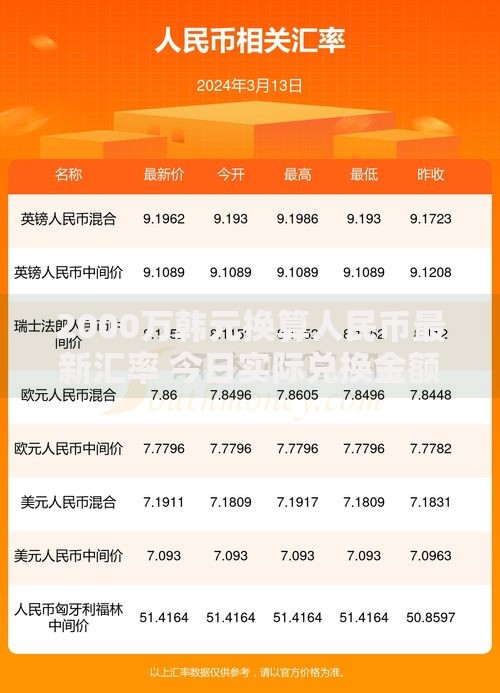 2000万韩元换算人民币最新汇率 今日实际兑换金额详解