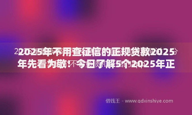 2025年不用查征信的正规贷款2025年先看为敬!今日了解5个2025年正规借款不用查征信平台
