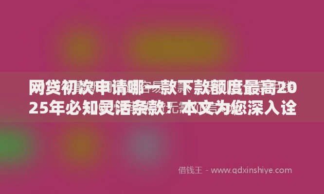 网贷初次申请哪一款下款额度最高2025年必知灵活条款!本文为您深入诠释!