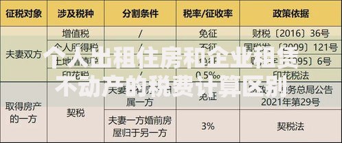 个人出租住房和企业租赁不动产的税费计算区别